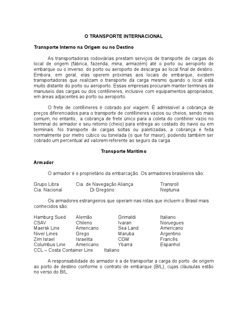 contrato entre o vendedor e comprador. Esse transporte é coberto por apenas um
