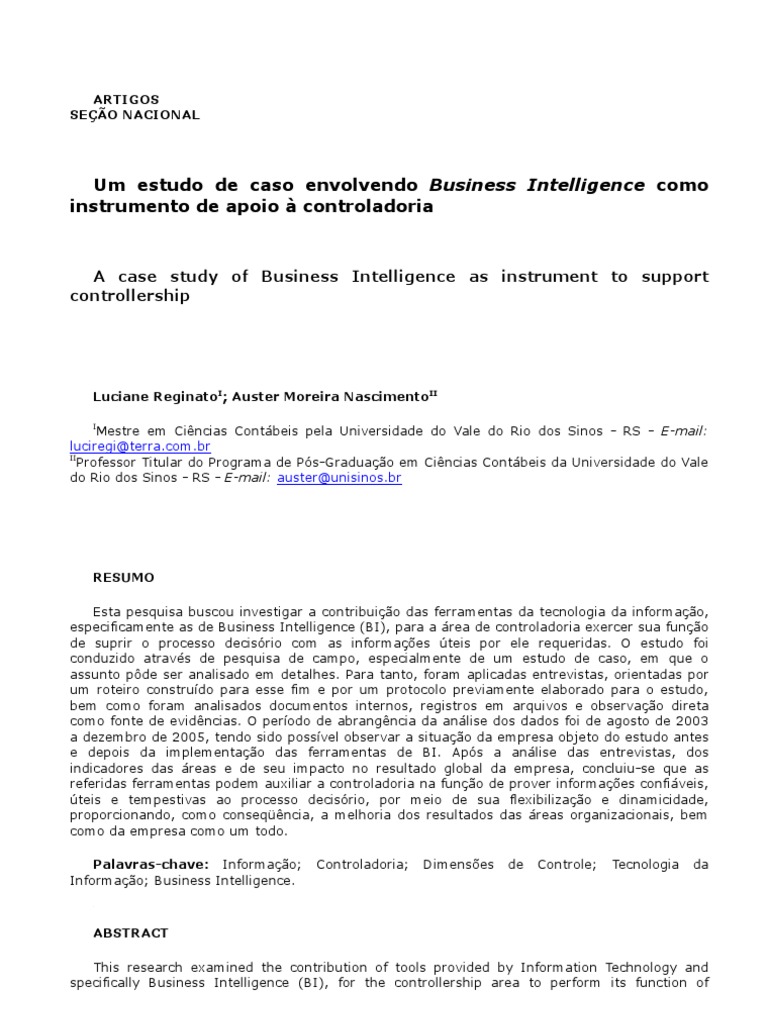 Um estudo de caso envolvendo Business Intelligence como