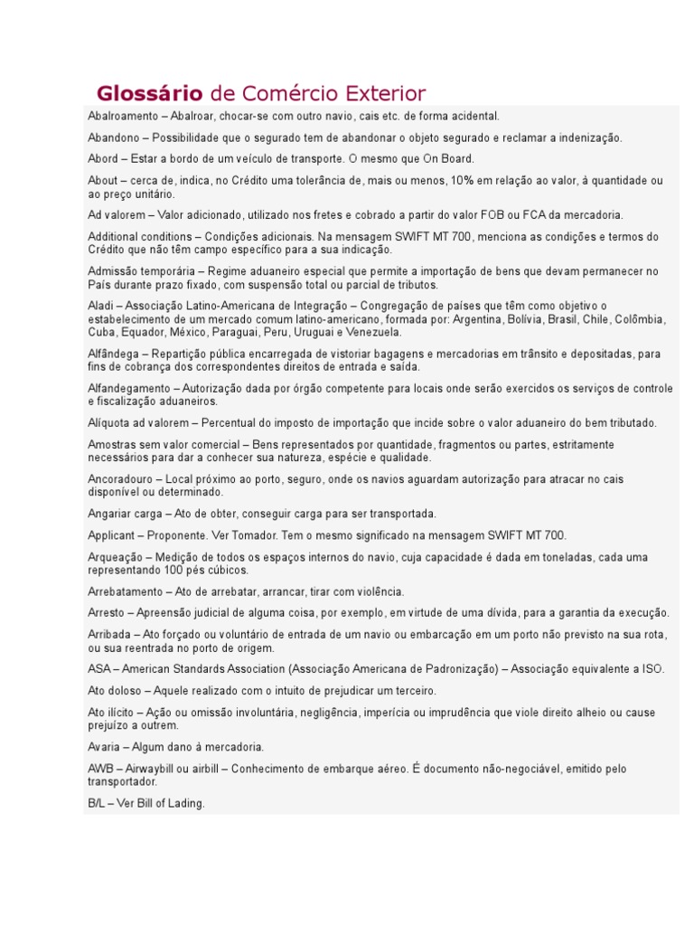 Beneficiário – O mesmo que vendedor (geralmente, o exportador), é aquele que recebe o valor do Crédito.