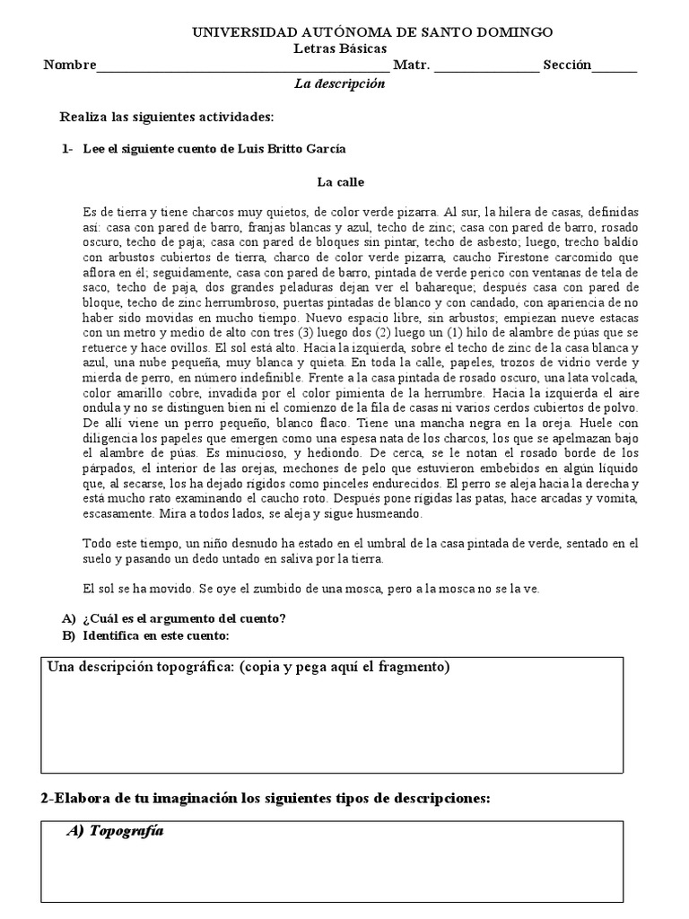 2-Elabora de tu imaginación los siguientes tipos de descripciones:
