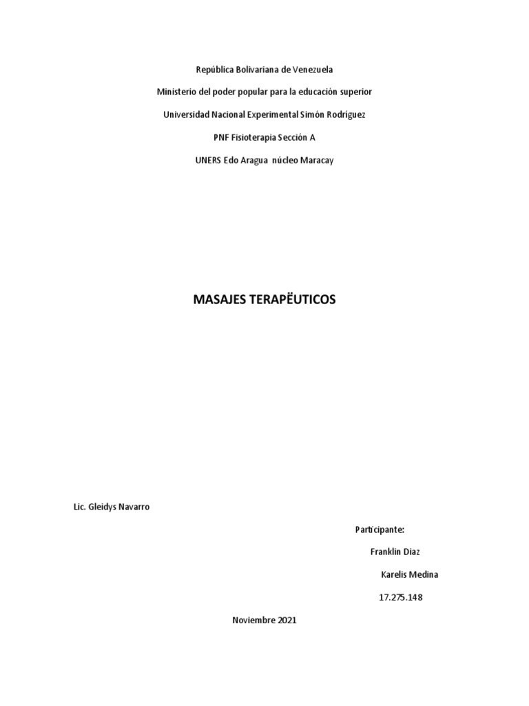 tiene finalidad terapéutica, higiénica o deportiva. El masaje es indispensable en la fisioterapia ya