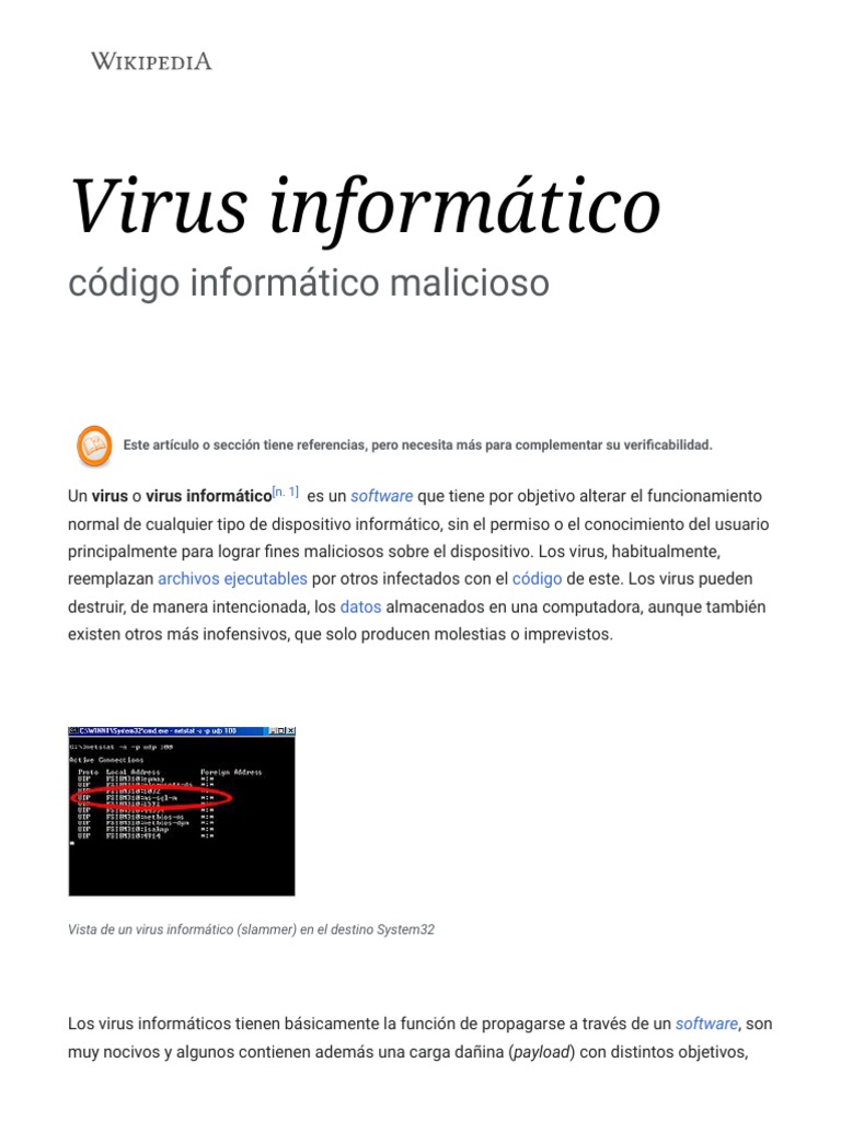 Un virus o virus informático[n. 1] es un software que tiene por objetivo alterar el funcionamiento