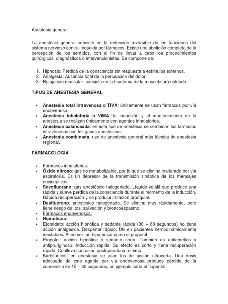 Propofol: acción hipnótica y sedante corta. También es antiemético y