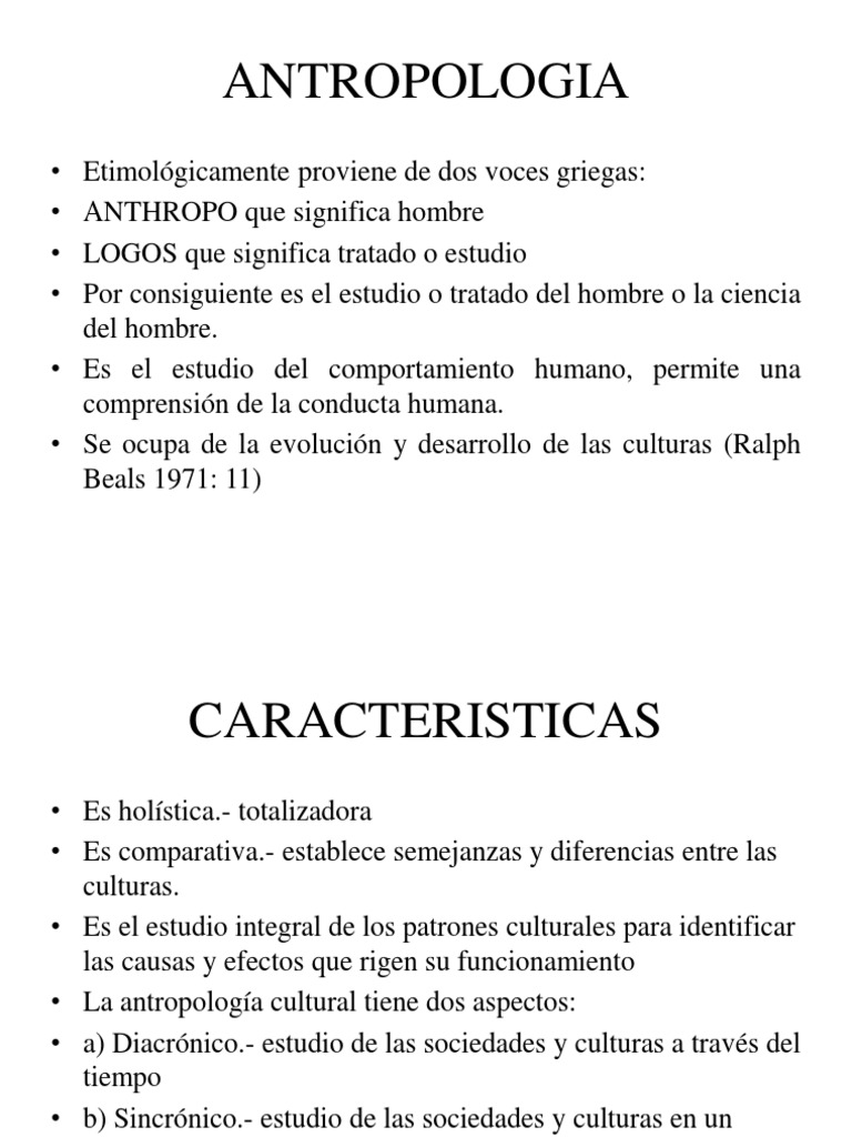 • Se ocupa de la evolución y desarrollo de las culturas (Ralph