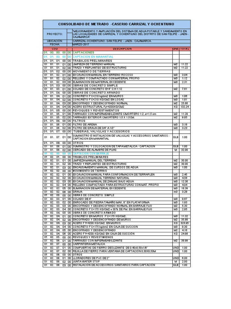 CONSOLIDADO DE METRADO -CASERIO CARRIZAL Y OCHENTIUNO