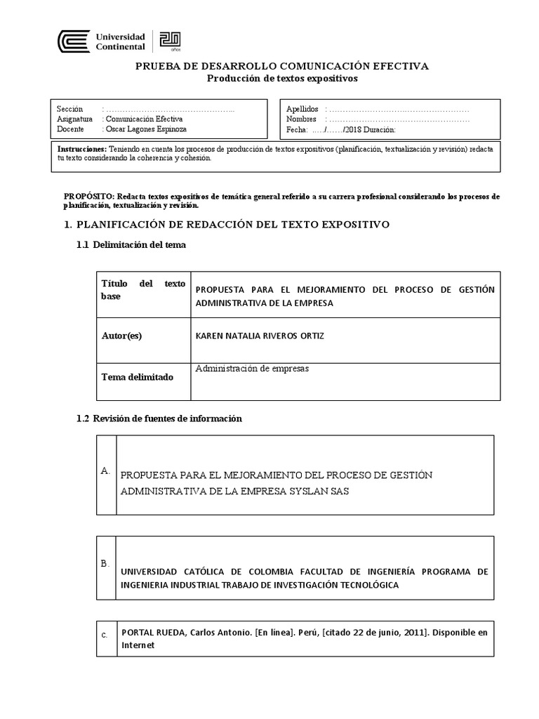 Instrucciones: Teniendo en cuenta los procesos de producción de textos expositivos (planificación, textualización y revisión) redacta