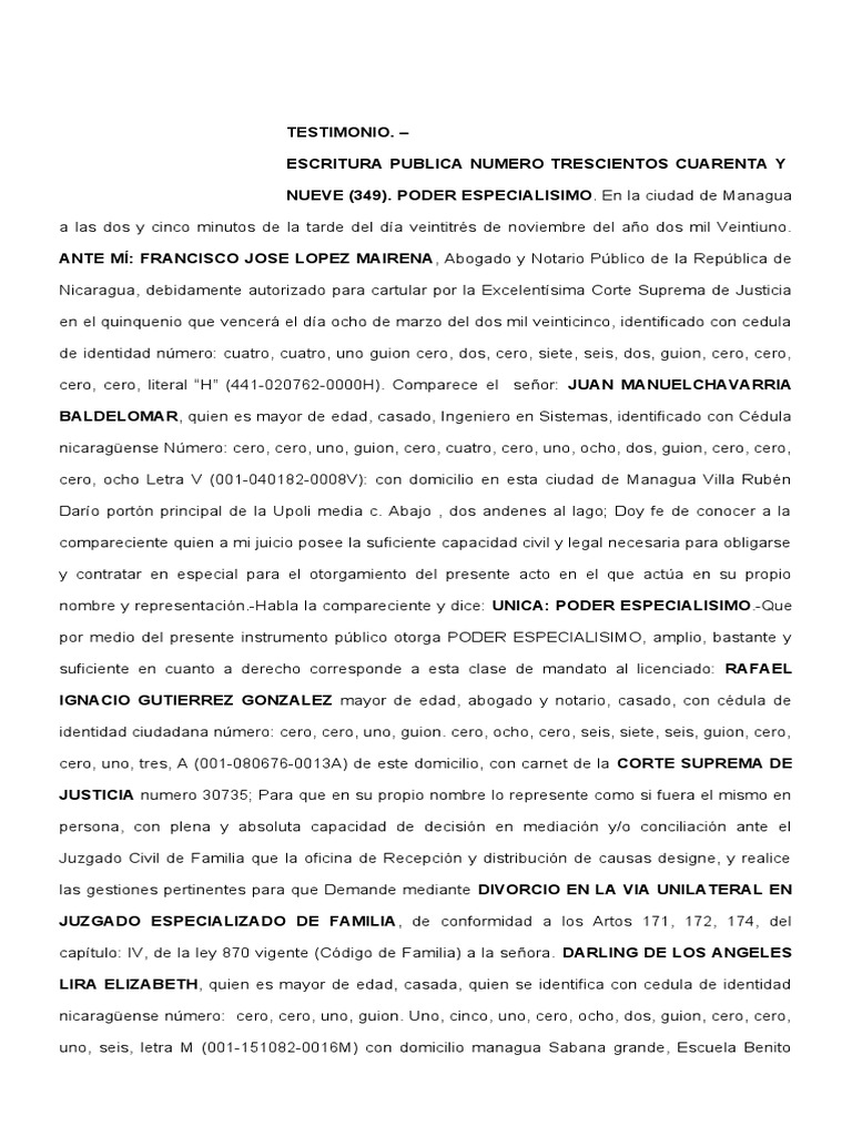 NUEVE (349). PODER ESPECIALISIMO. En la ciudad de Managua