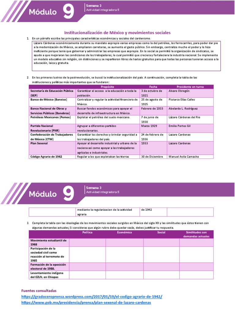 3. Completa la tabla con las ideologías de los movimientos sociales surgidos en México del siglo XX y las similitudes que éstos tienen con