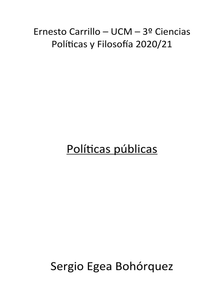 Lleguemos por fin a la definición de las políticas públicas. Cualquier política pública es