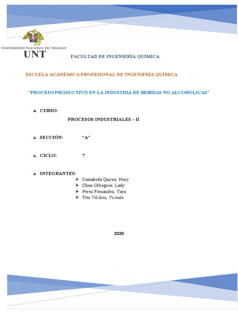 PROCESO PRODUCTIVO EN LA INDUSTRIA DE BEBIDAS NO