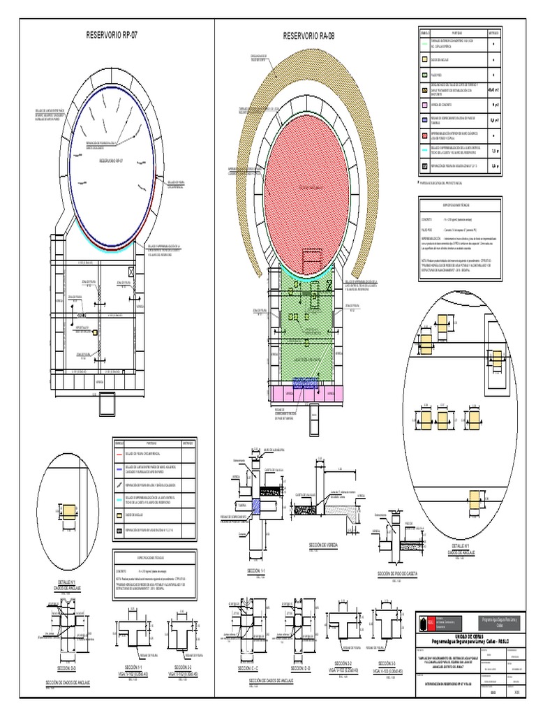 SECCIÓN DE DADOS DE ANCLAJE ESC. 1/20 INTERVENCIÓN EN RESERVORIO RP-07 Y RA-08
