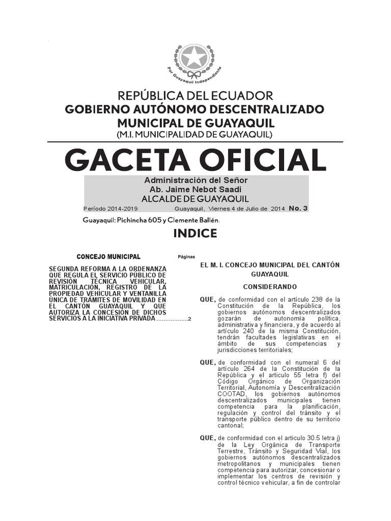 Período 2014-2019 Guayaquil, Viernes 4 de Julio de 2014 No. 3