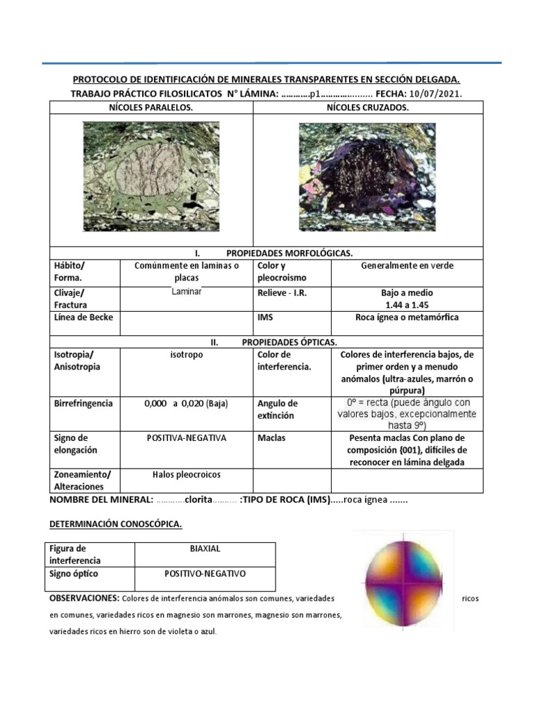 TRABAJO PRÁCTICO FILOSILICATOS N° LÁMINA: …………p1…………......... FECHA: 10/07/2021.