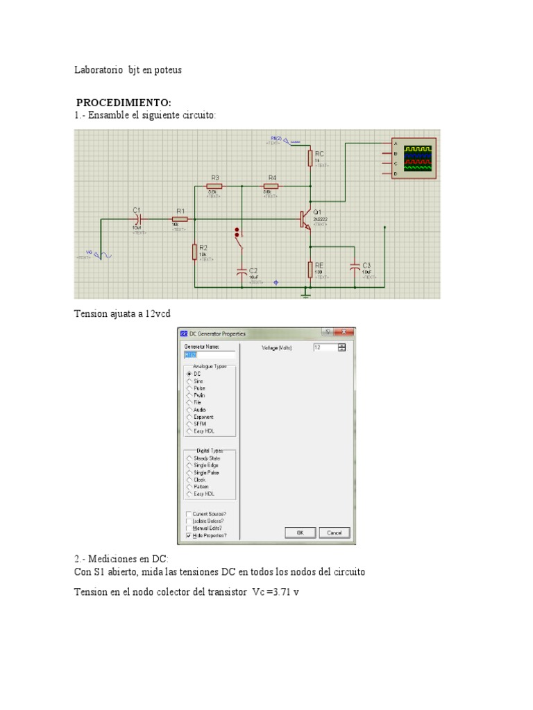 Con S1 abierto, mida las tensiones DC en todos los nodos del circuito