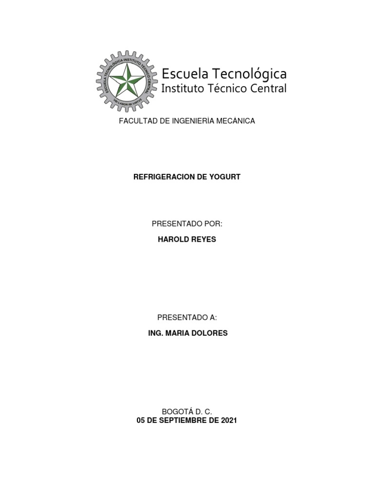 Diseñar y calcular una cámara para la refrigeración de yogurt en la ciudad de