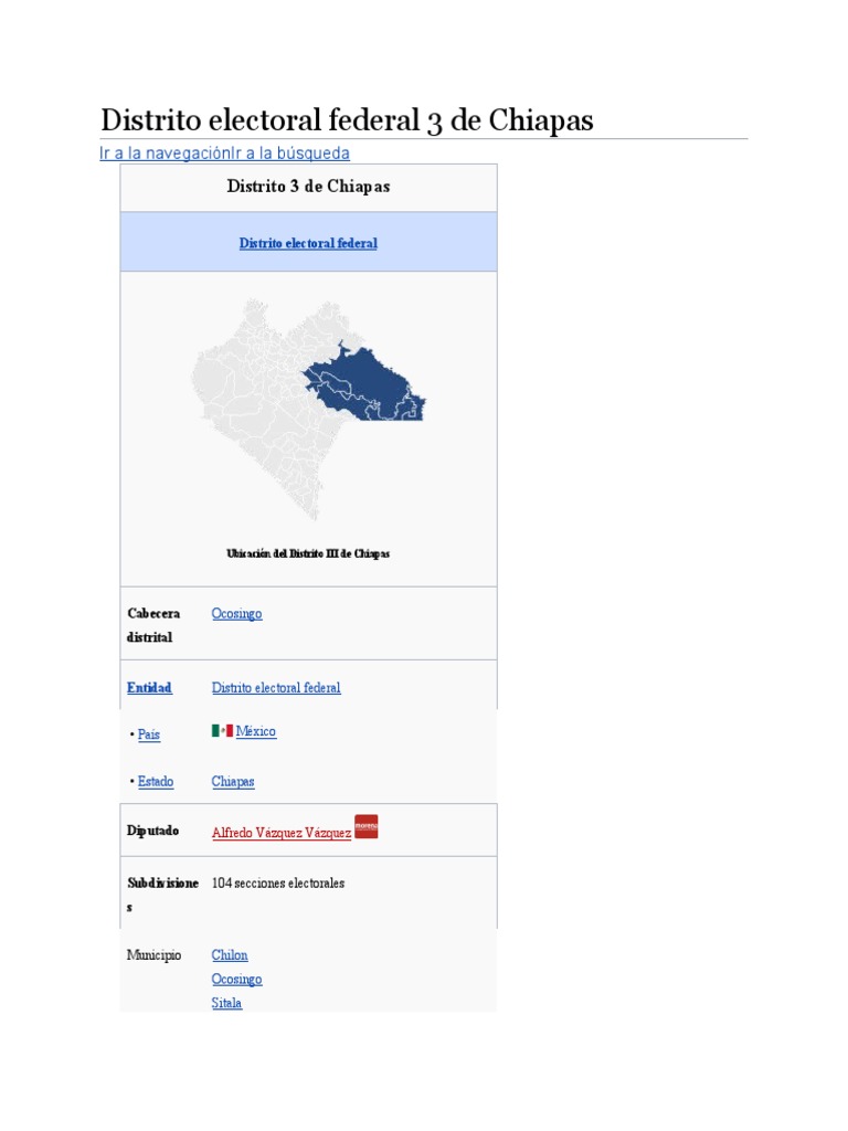 El III Distrito Electoral Federal de Chiapas es uno de los 300 Distritos Electorales en