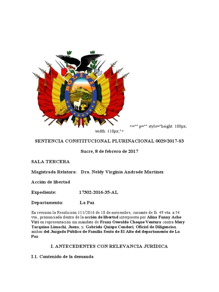 SENTENCIA CONSTITUCIONAL PLURINACIONAL 0029/2017-S3