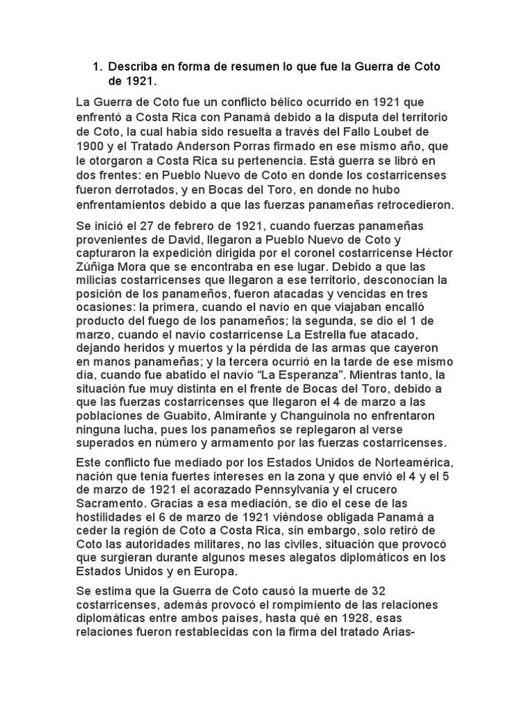 Describa en forma de resumen lo que fue la Guerra de Coto