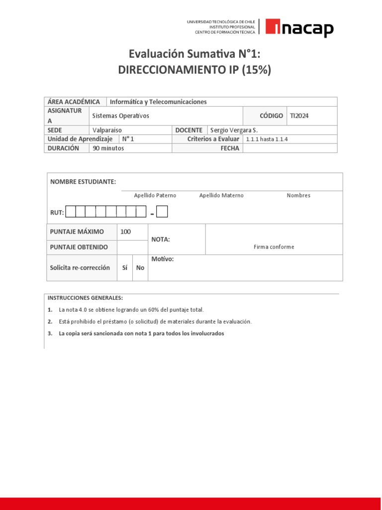 Evaluación Sumativa N°1: