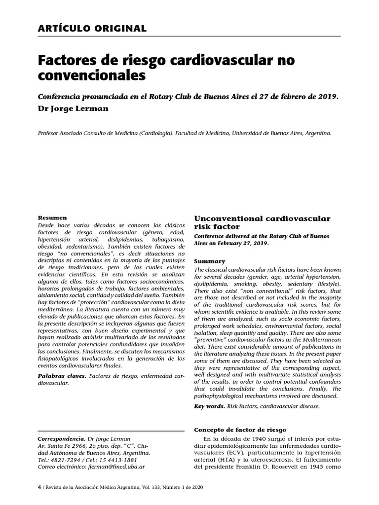 Profesor Asociado Consulto de Medicina (Cardiología). Facultad de Medicina, Universidad de Buenos Aires, Argentina.