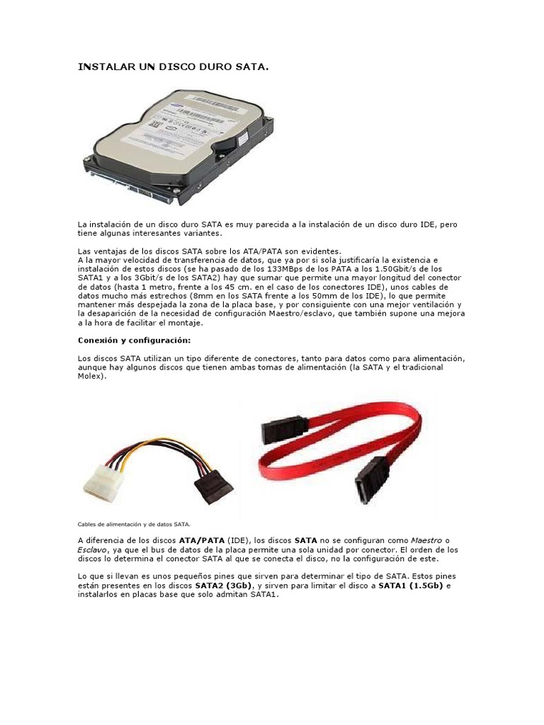 A diferencia de los discos ATA/PATA (IDE), los discos SATA no se configuran como Maestro o