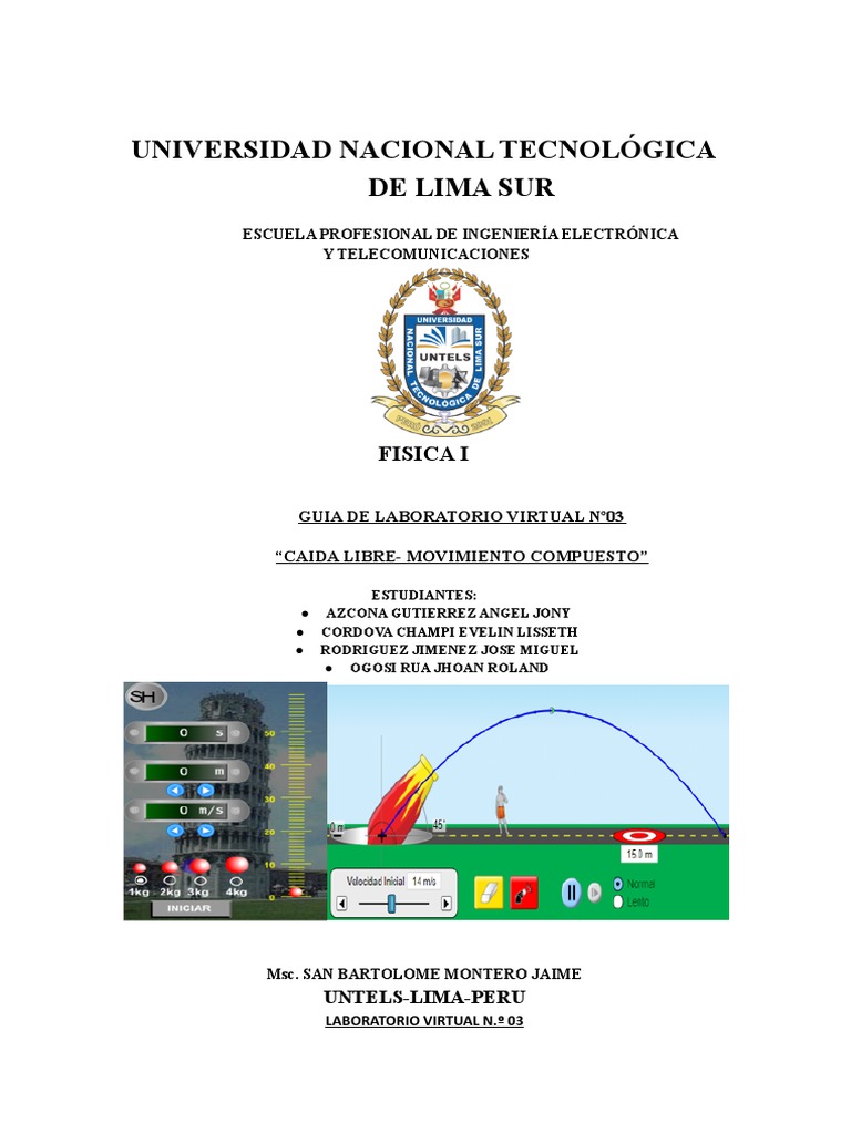 Página para desarrollar el laboratorio de movimiento de caída libre
