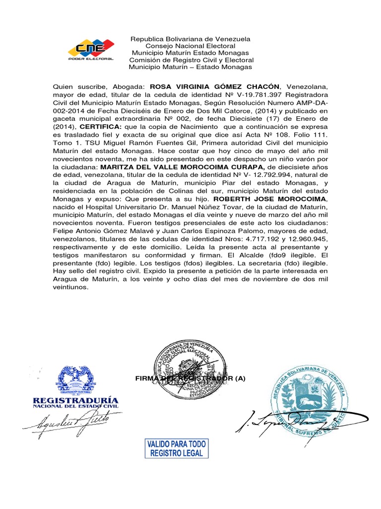 Maturín del estado Monagas. Hace costar que hoy cinco de mayo del año mil
