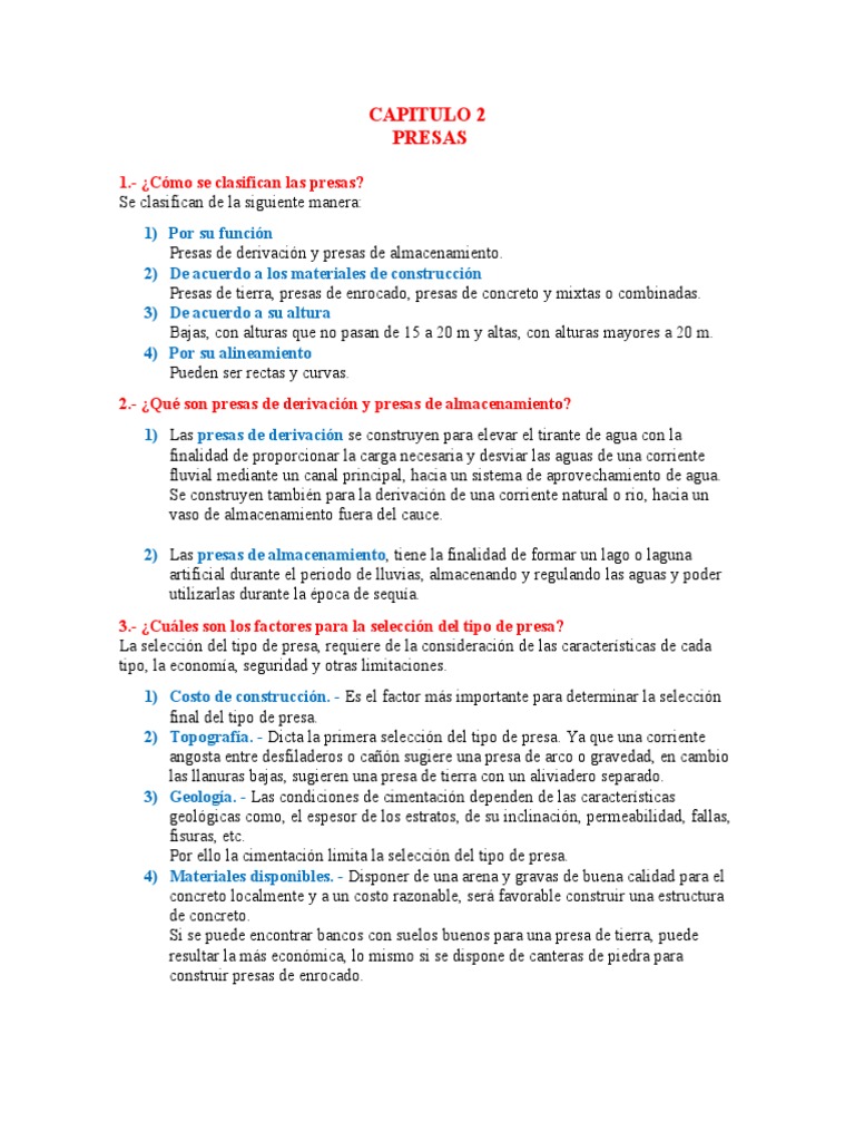 2.- ¿Qué son presas de derivación y presas de almacenamiento?
