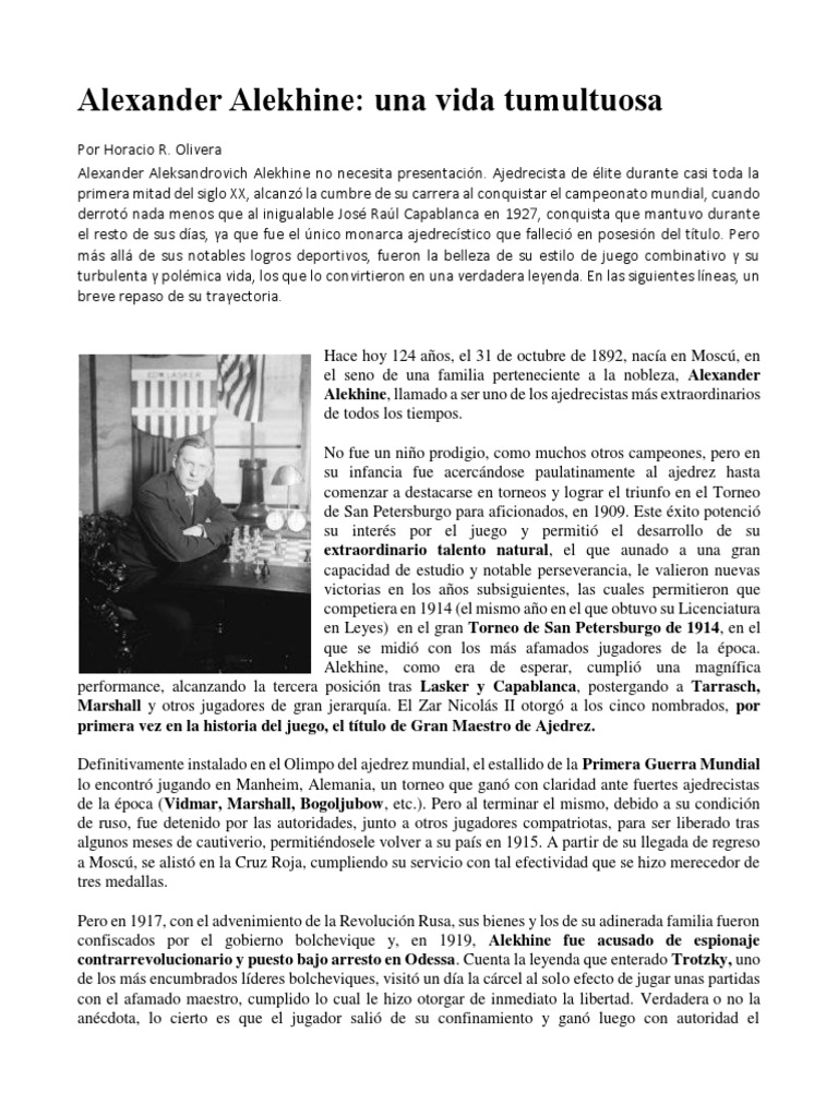 vida de Alekhine, quien será considerado a partir de ese