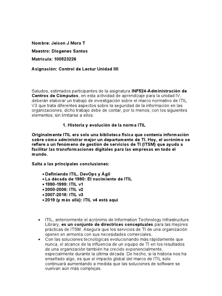 deberán elaborar un trabajo de investigación sobre el marco normativo de ITIL