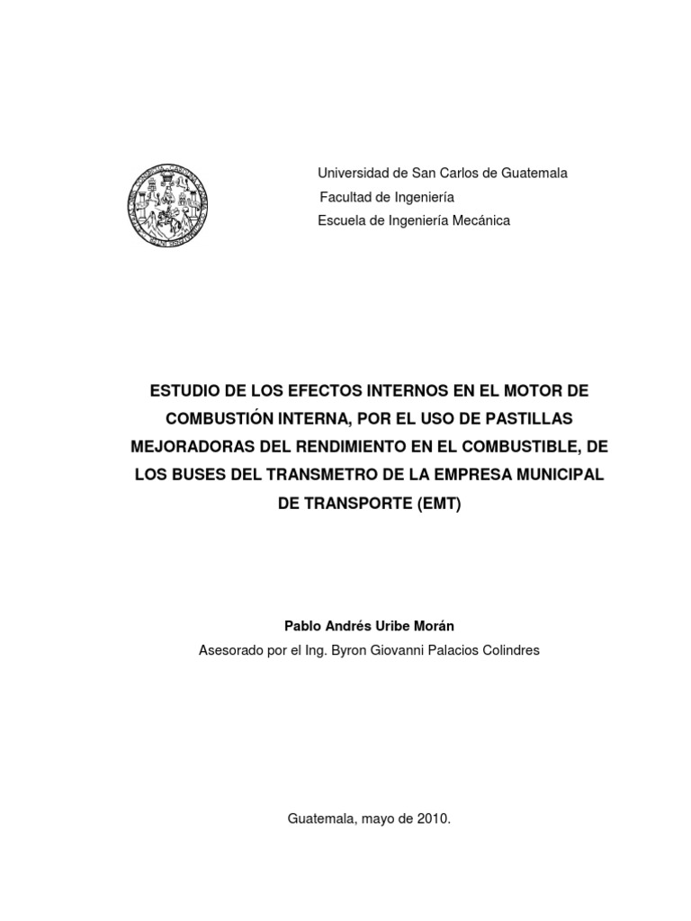 3.1.2 Rendimiento del motor (Km/Gal)……………………… 37