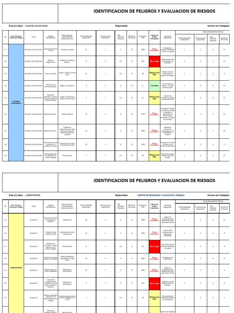 Área y/o Dpto. : LABORATORIOS Responsable: COMITE DE SEGURIDAD Y SALUD EN EL TRABAJO Numero de Trabajadores: