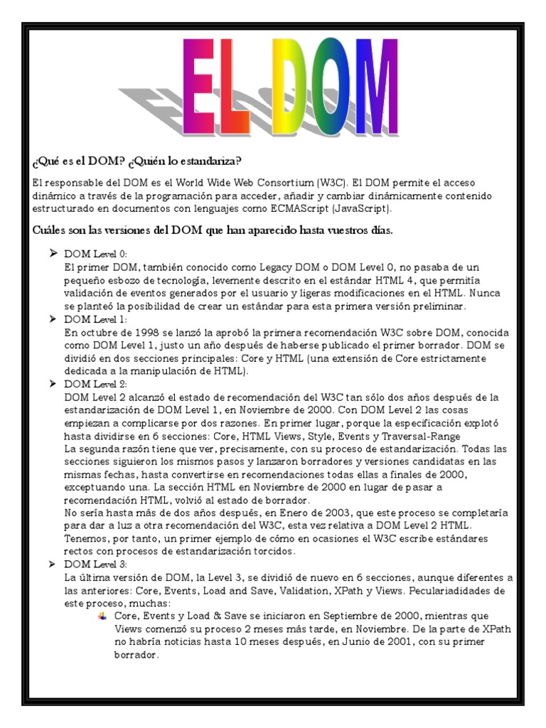 estandarización de DOM Level 1, en Noviembre de 2000. Con DOM Level 2 las cosas