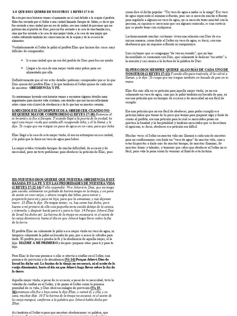 LO QUE DIOS QUIERE DE NOSOTROS 1 REYES 17:8-16 como dice el dicho popular: “Un vaso de agua a nadie se le niega” Ese vaso