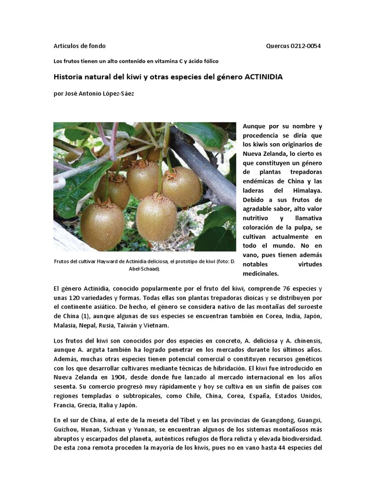 Historia natural del kiwi y otras especies del género ACTINIDIA