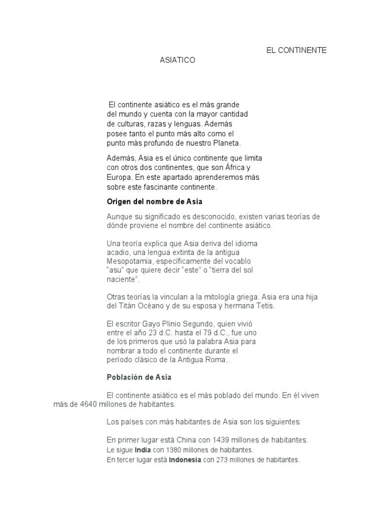 El continente asiático es el más poblado del mundo. En él viven