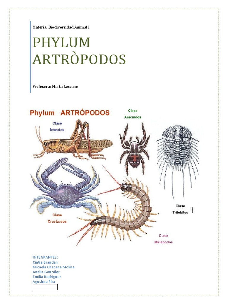 PHYLUM ARTRÓPODOS. CARACTERES GENERALES DE LAS CLASES
