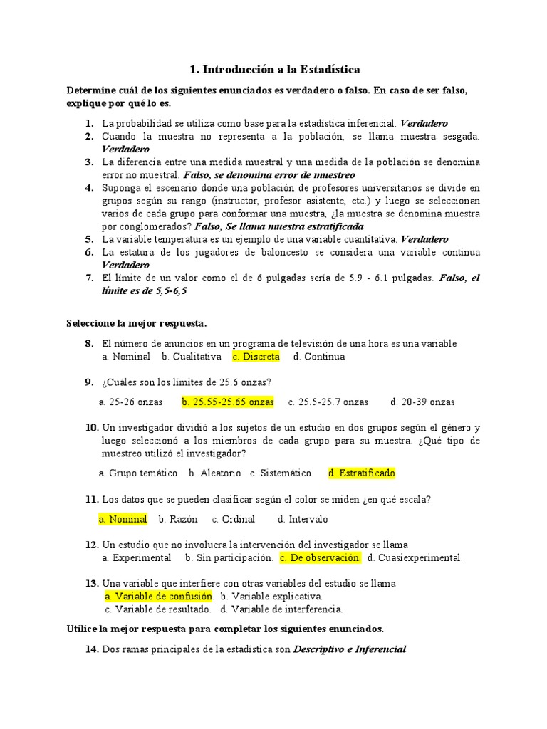 1. La probabilidad se utiliza como base para la estadística inferencial. Verdadero