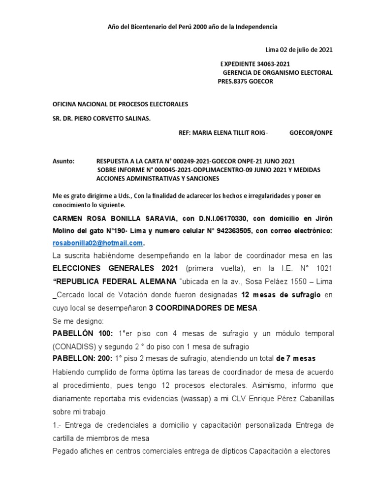 REF: MARIA ELENA TILLIT ROIG - GOECOR/ONPE