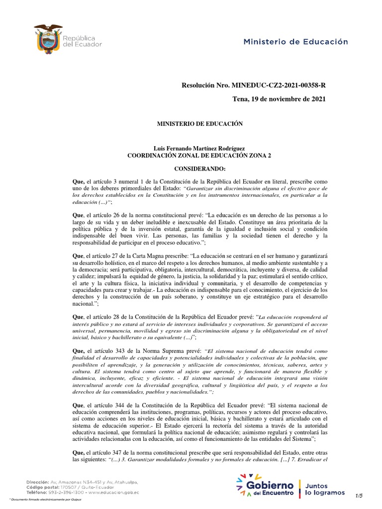 Resolución Nro. MINEDUC-CZ2-2021-00358-R