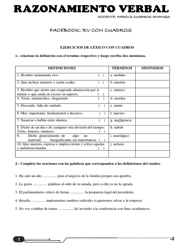 RAZONAMIENTO VERBAL DOCENTE: HAROLD CUADROS AMANQUI