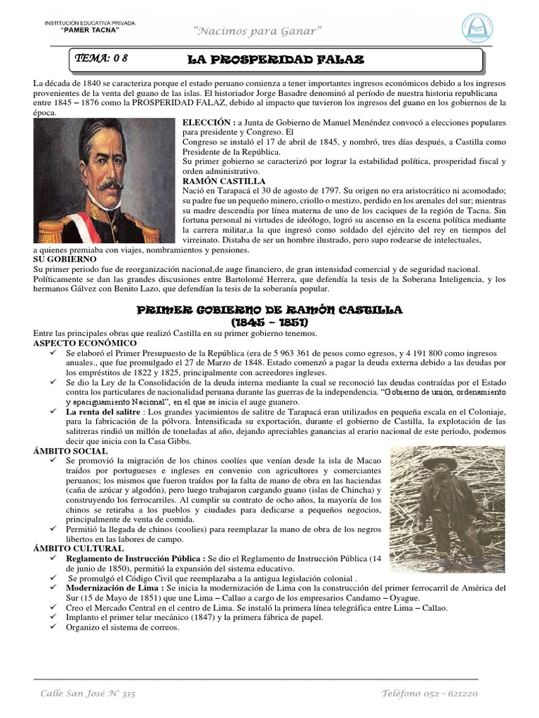 entre 1845 – 1876 como la PROSPERIDAD FALAZ, debido al impacto que tuvieron los ingresos del guano en los gobiernos de la