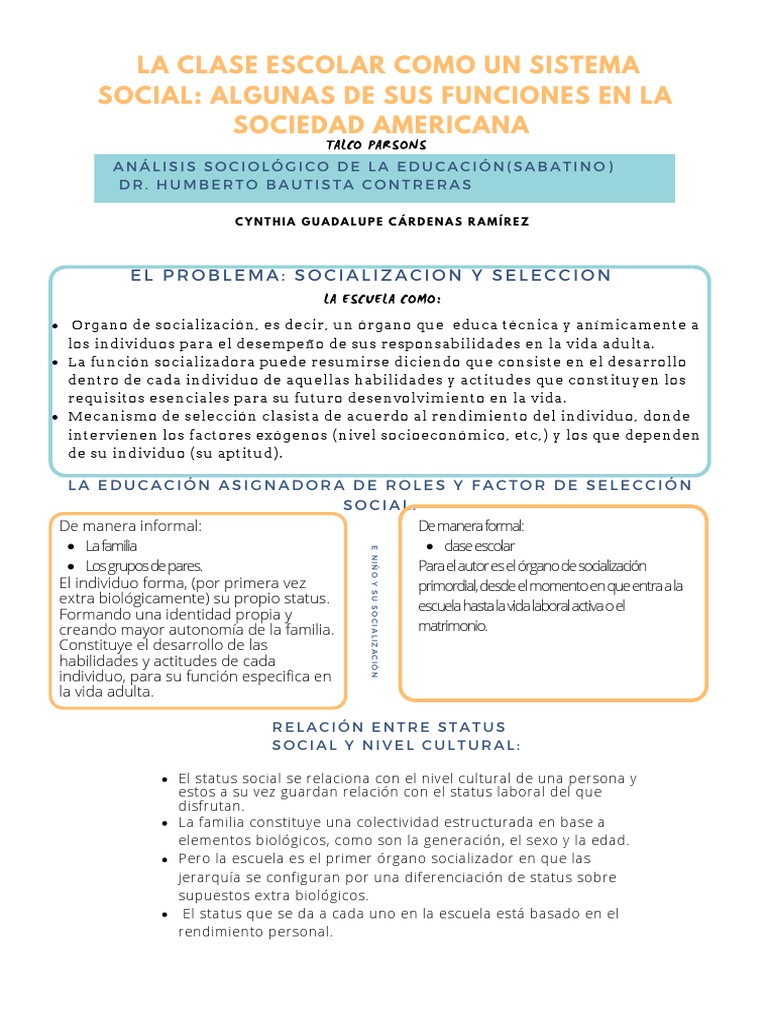 La función socializadora puede resumirse diciendo que consiste en el desarrollo