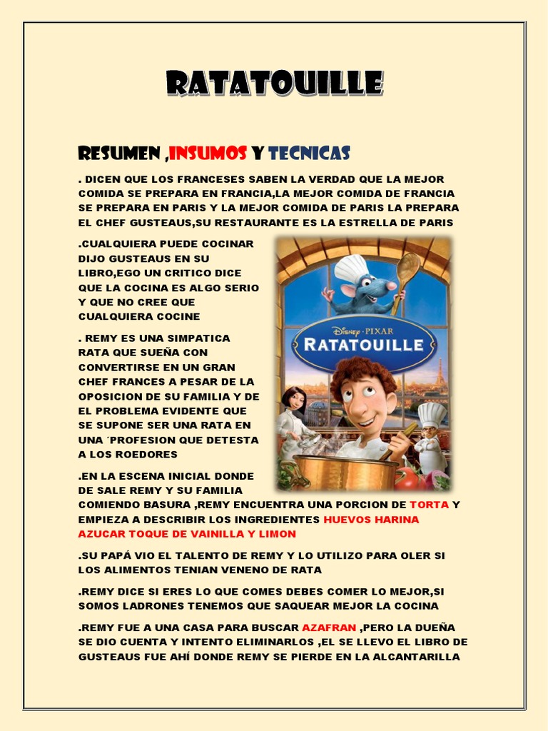 .REMY DICE SI ERES LO QUE COMES DEBES COMER LO MEJOR,SI