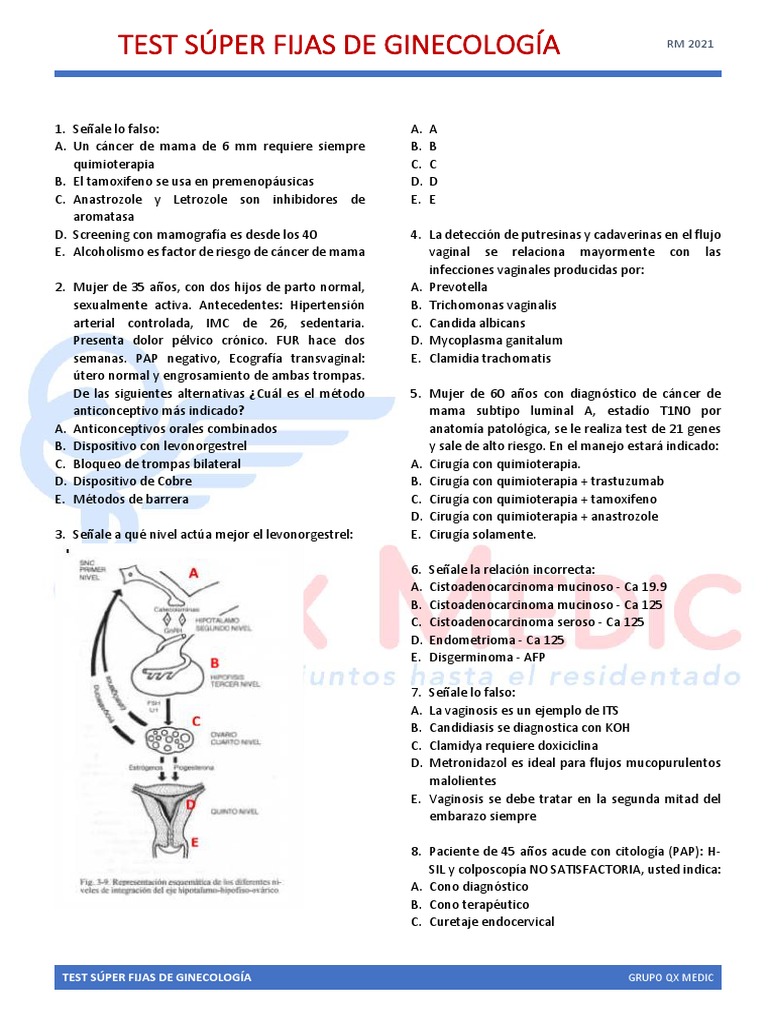 TEST SÚPER FIJAS DE GINECOLOGÍA GRUPO QX MEDIC
