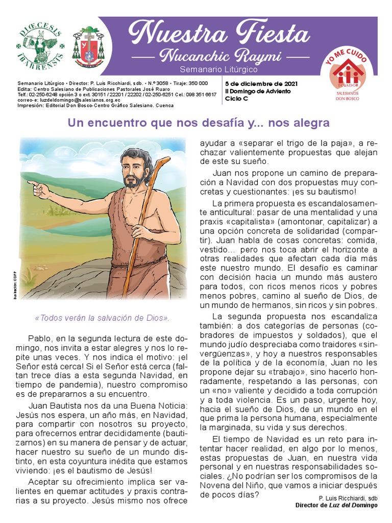 Semanario Litúrgico • Director: P. Luis Ricchiardi, sdb. • N.º 3058 • Tiraje: 350 000 5 de diciembre de 2021
