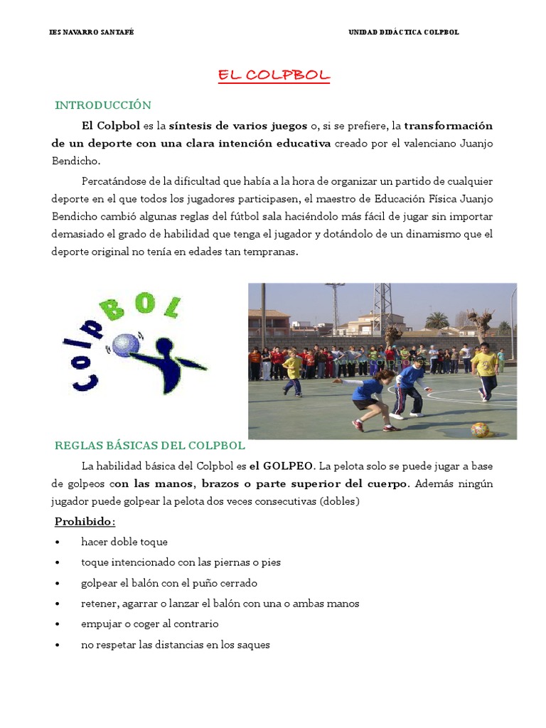 IES NAVARRO SANTAFÉ UNIDAD DIDÁCTICA COLPBOL