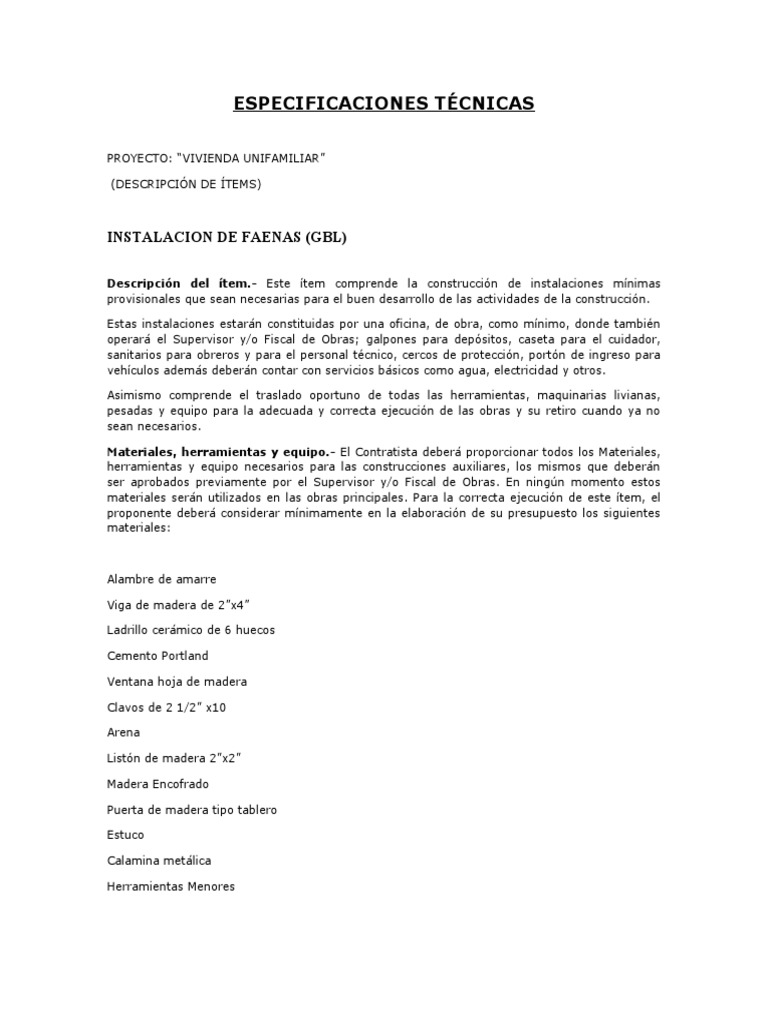 Descripción del ítem.- Este ítem se refiere a la ejecución de todos los trabajos