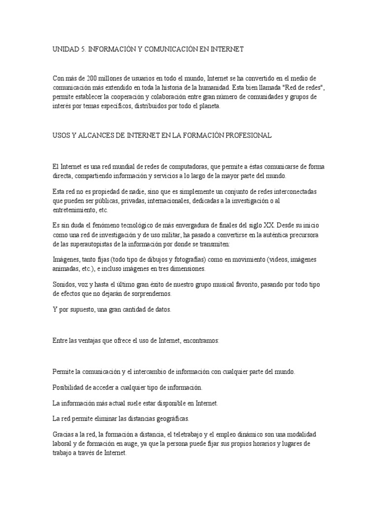INFORMACIÓN Y COMUNICACIÓN EN INTERNET
