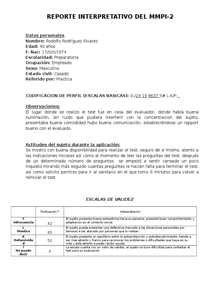 REPORTE INTERPRETATIVO DEL MMPI-2